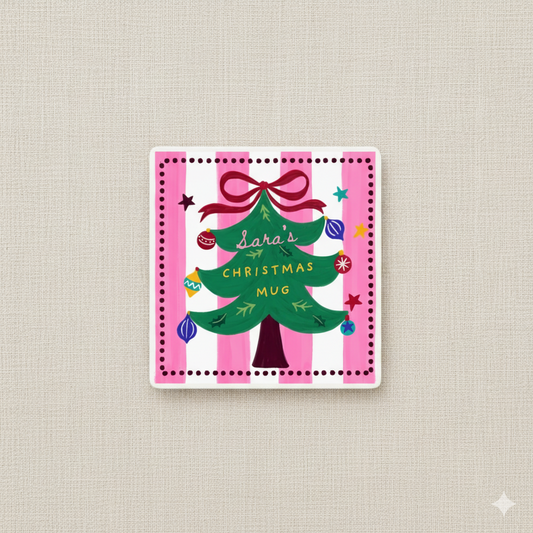 Christmas Mug with Custom Name, Handmade Christmas Tree Design